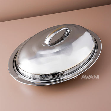 Elevate your dining experience with this Premium Stainless Steel Oval Serving Dish, expertly crafted for both elegance and functionality. Designed with a sleek mirror-polished finish, this dish not only enhances food presentation but also adds a sophisticated touch to your table setting. The ergonomic handle on the lid ensures safe and comfortable use, while the high-quality stainless steel construction guarantees durability, heat retention, and long-lasting shine.