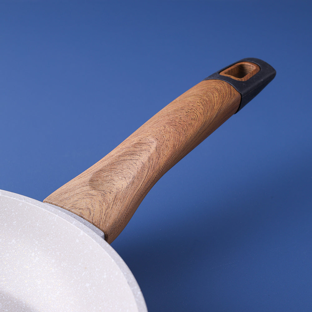 25*5 cm Forged Aluminum wooden Handle Fry Pan with Marble Non-Stick Coating