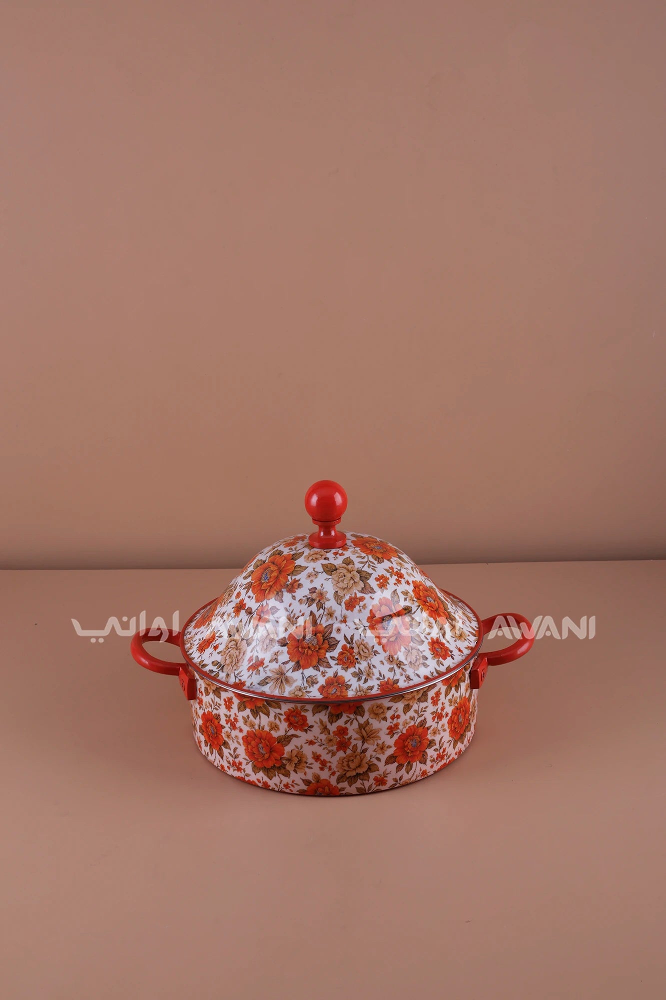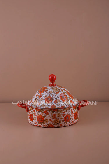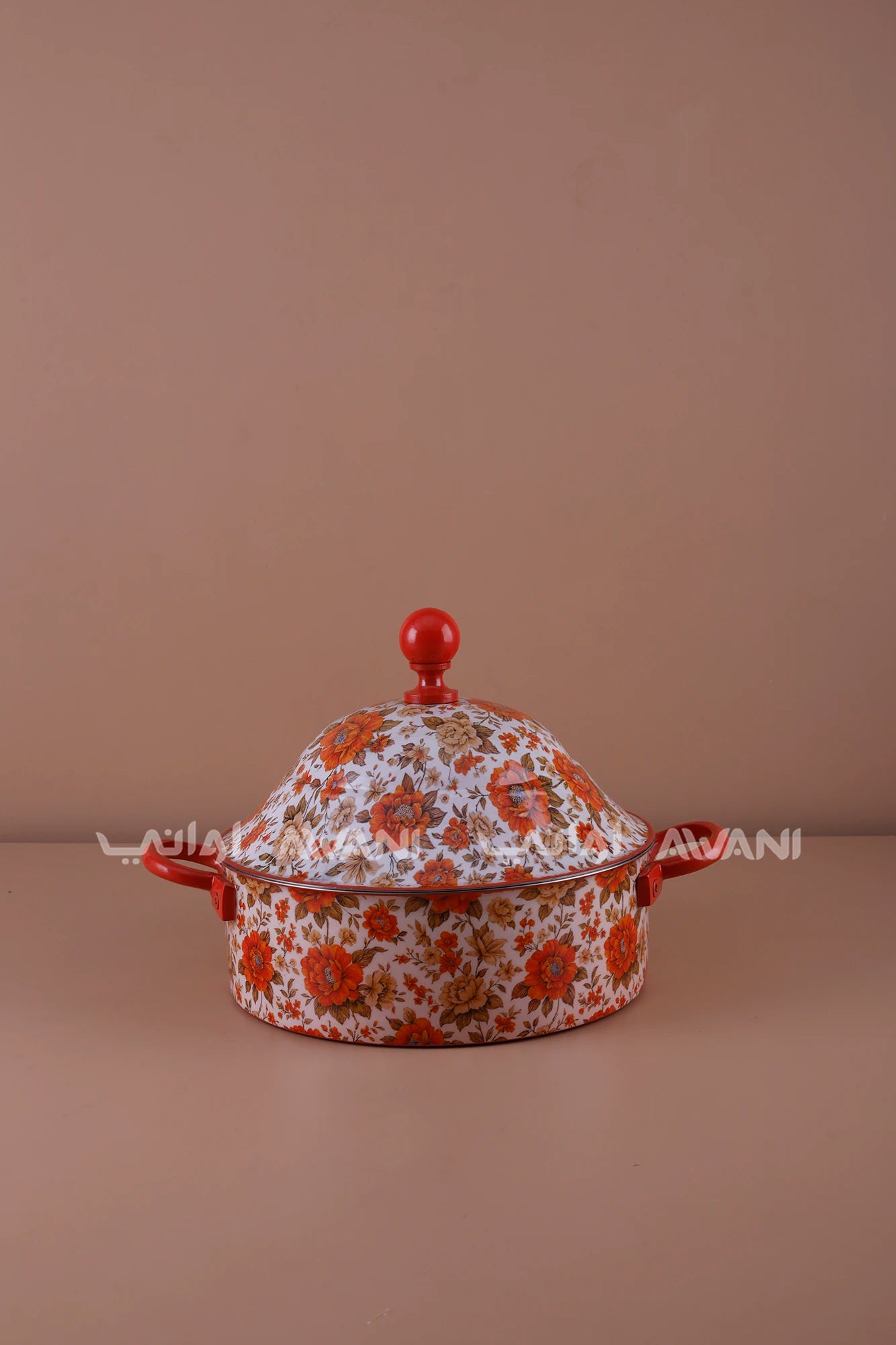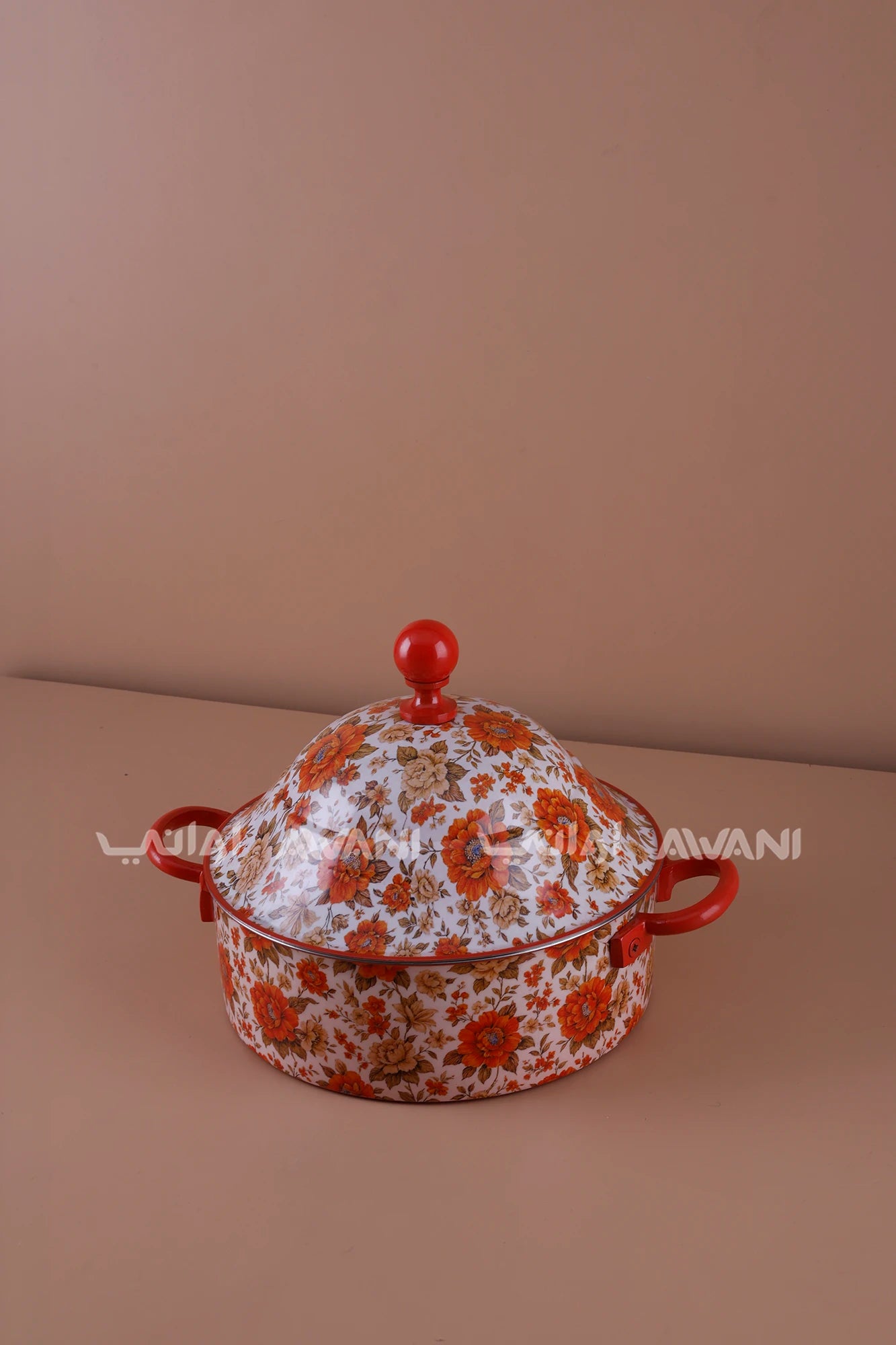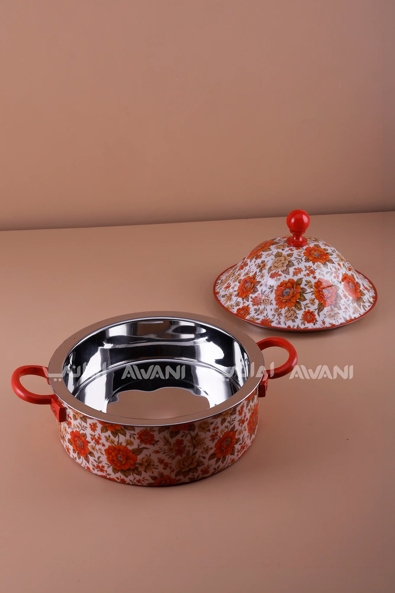 Floral Print Stainless Steel Hot Pot – 3500 ml - Red / Orange