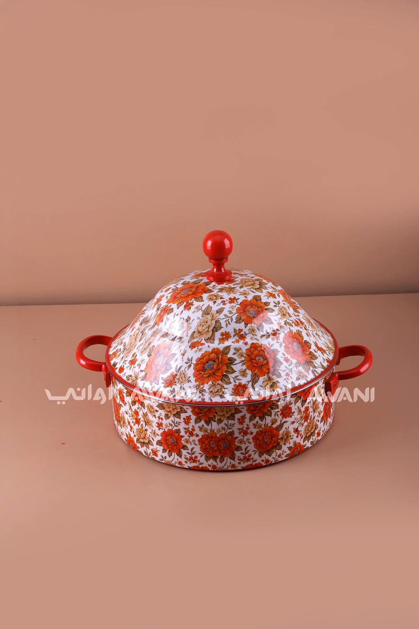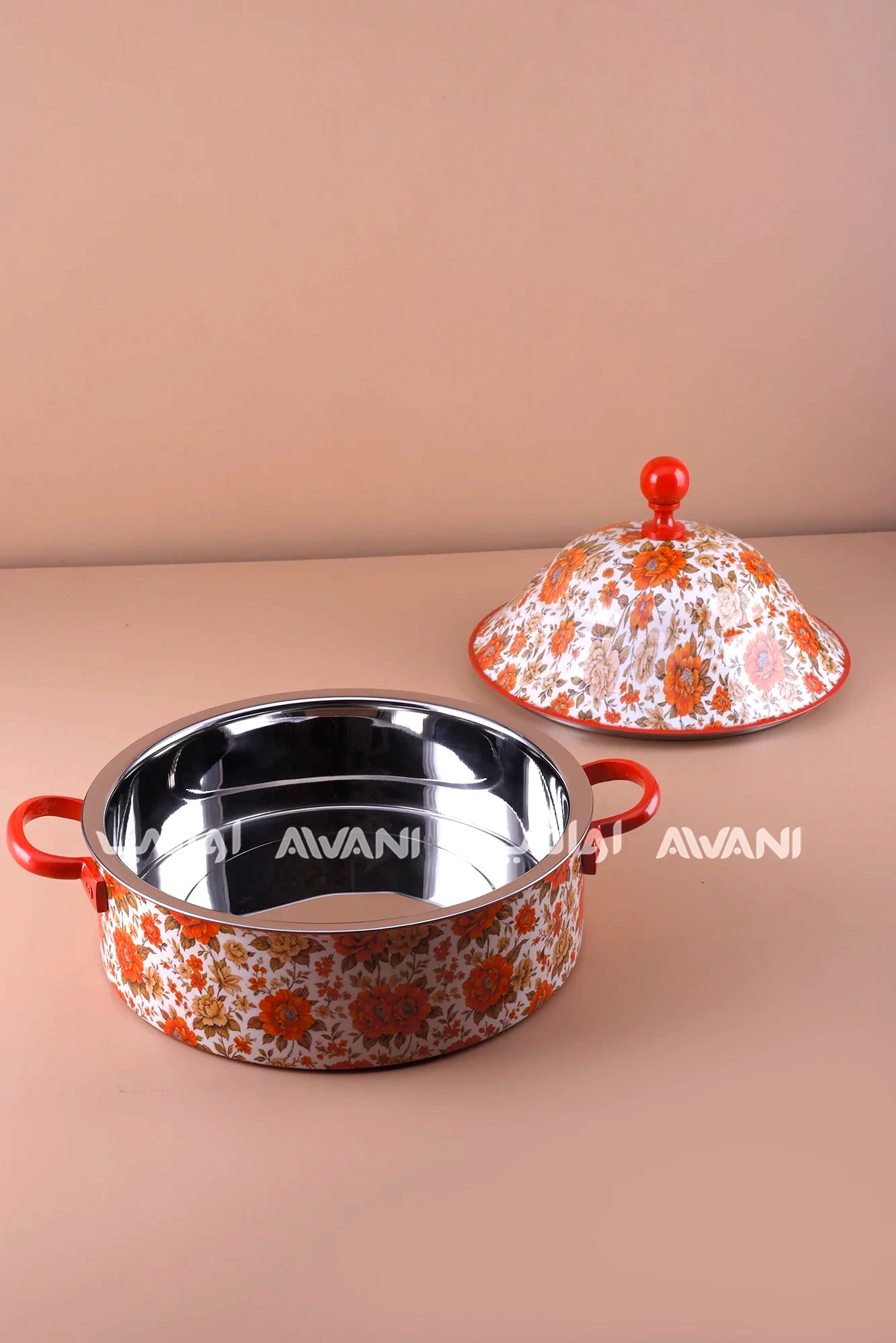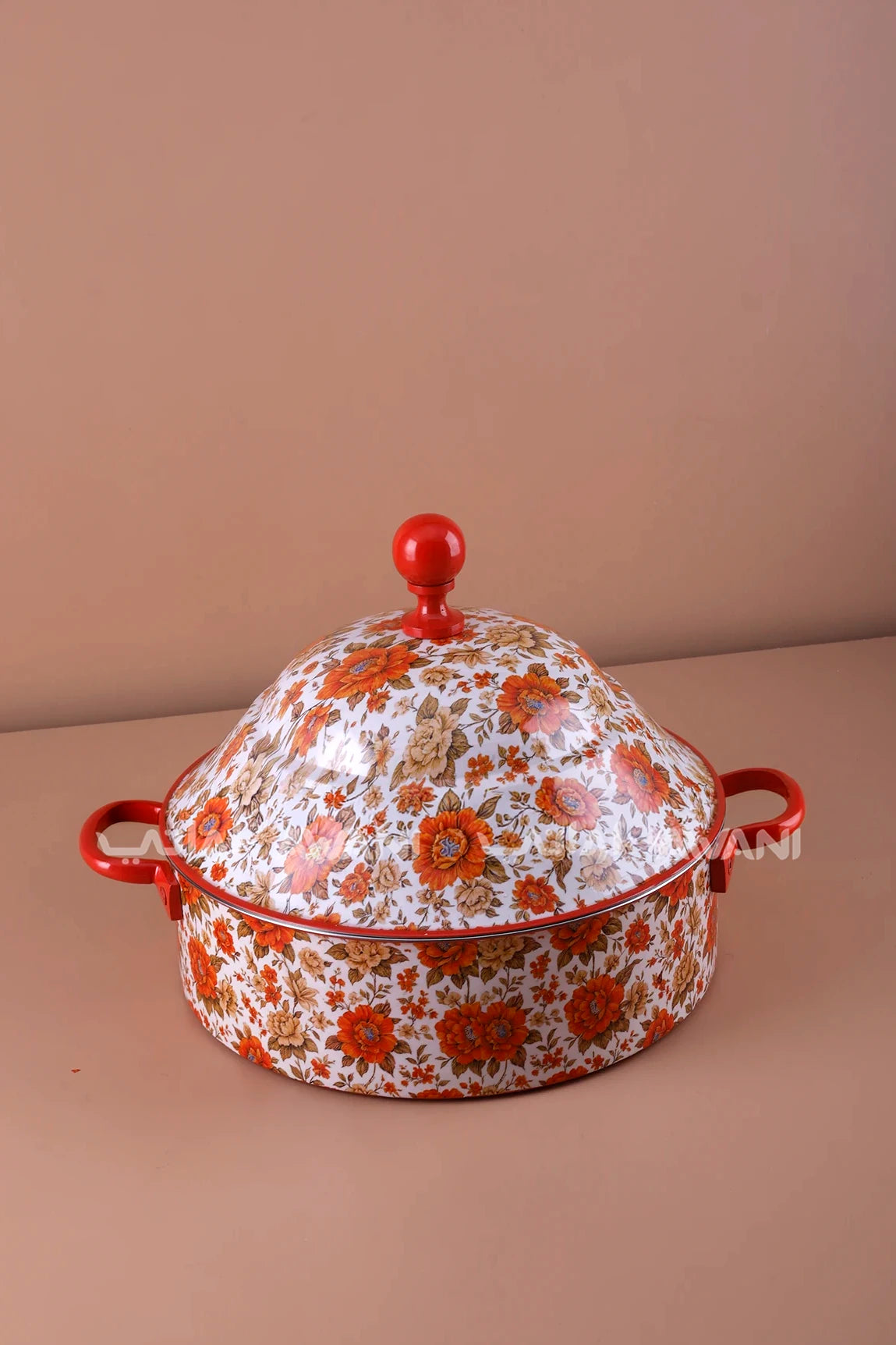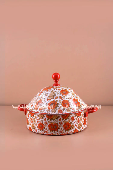 Floral Print Stainless Steel Hot Pot – 8000 ml - Red / Orange
