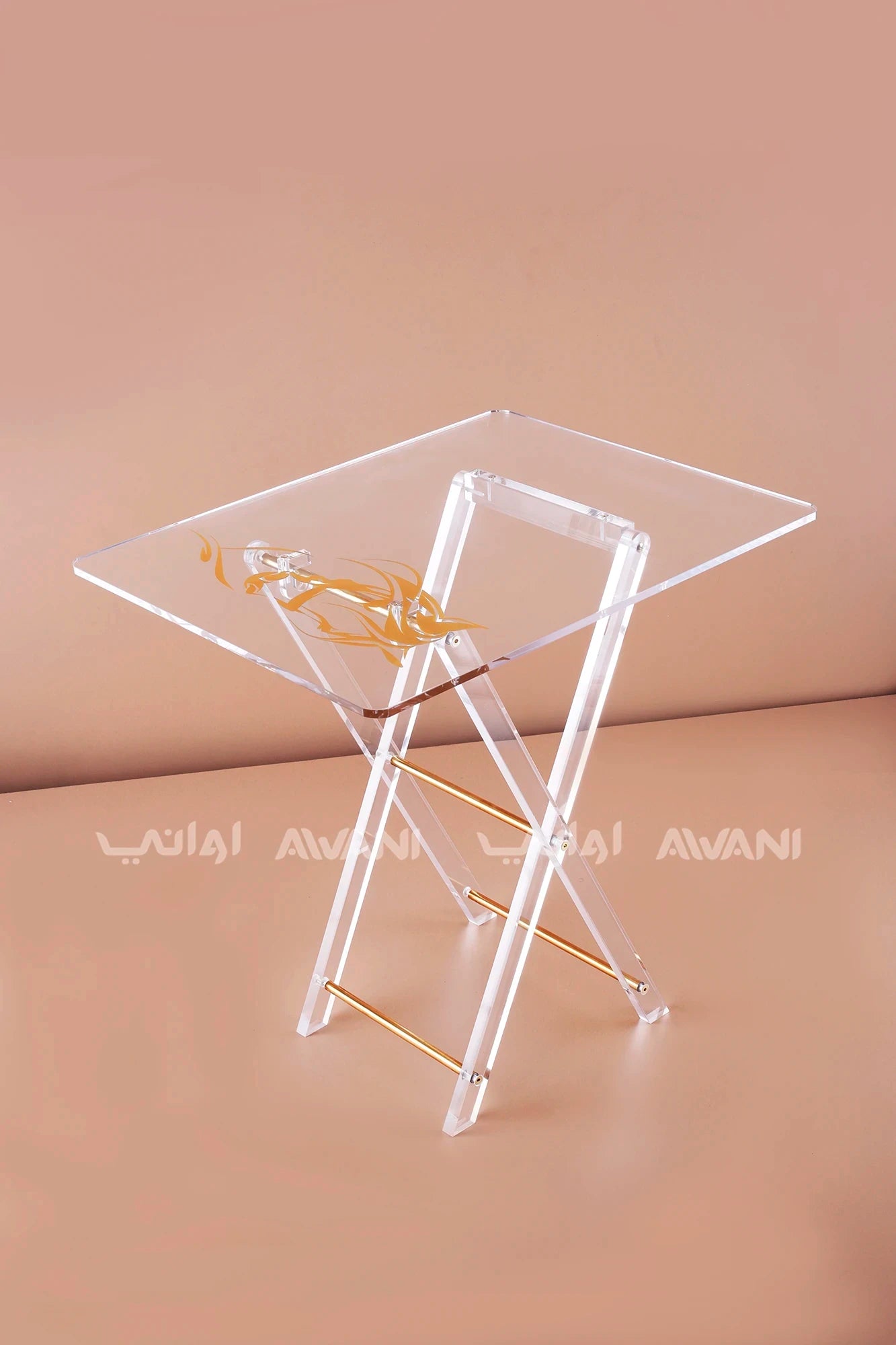 Acrylic Folding Table with Leather Straps – Clear Stand - White color