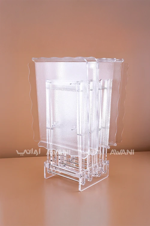 Shop elegant acrylic folding serving stand with wavy tray. Lightweight, durable & portable – perfect for home, parties & events.