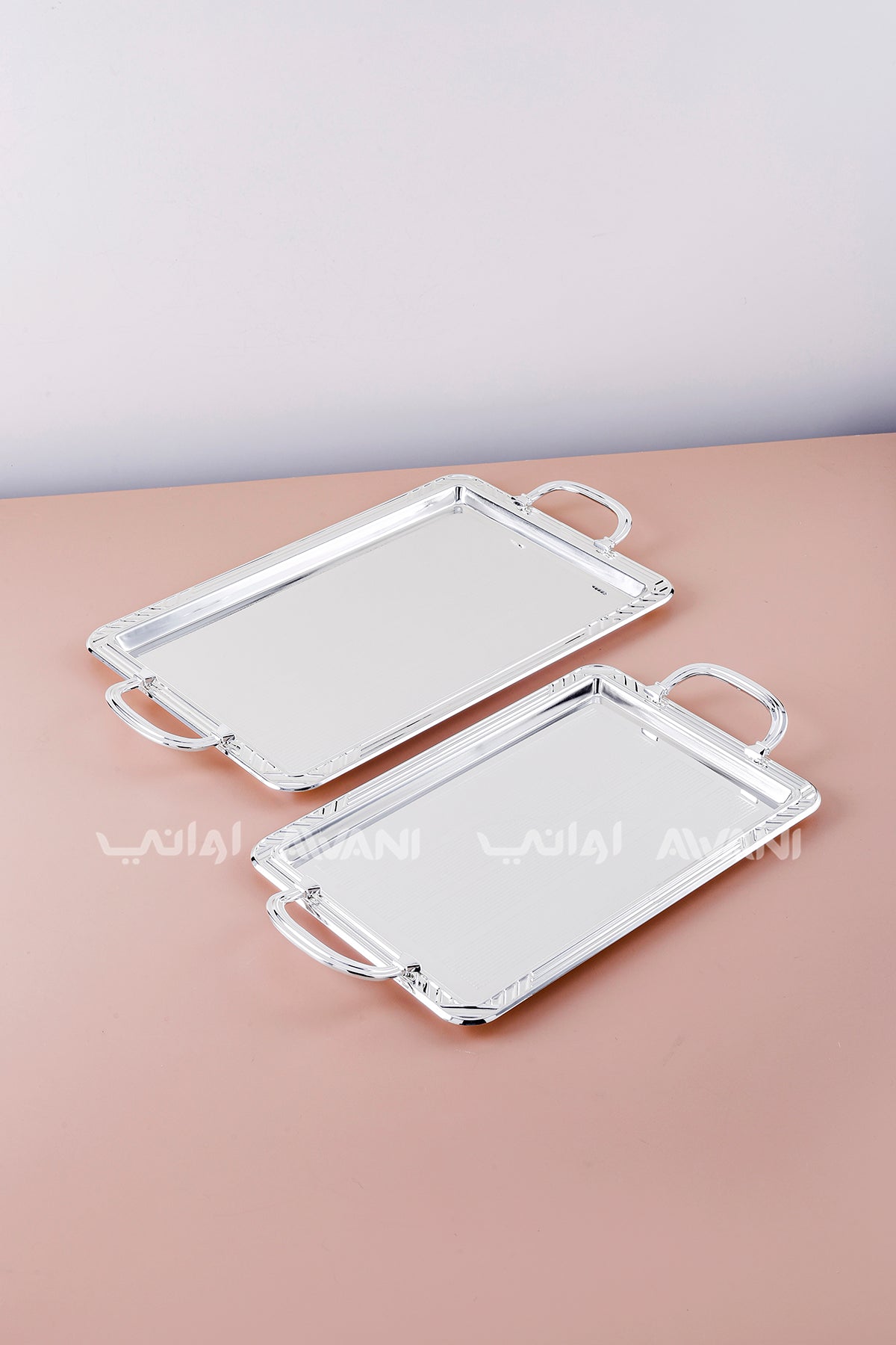 2 Pcs Luxury Silver Tray | Decorative Metal Serving Platter