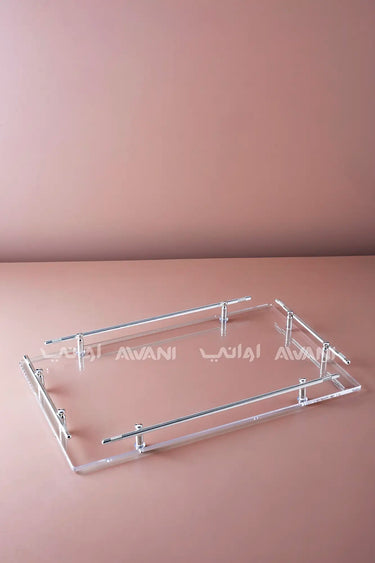 Clear Acrylic Tray with Silver Handles - Rec - S