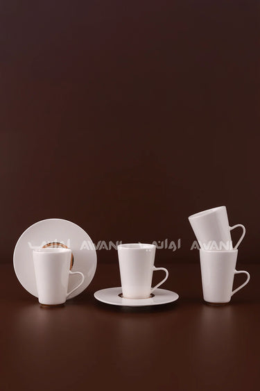 Ceramic White and Gold Rim Istikana Tea Cup and Saucer 6 pc Set Tea