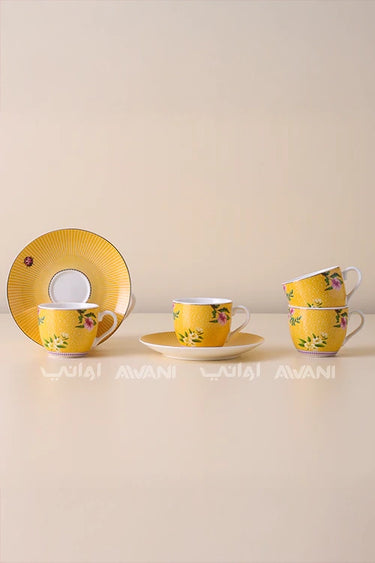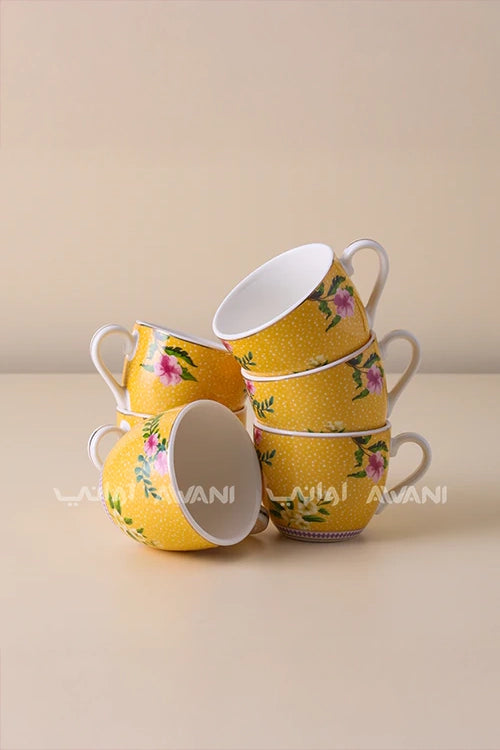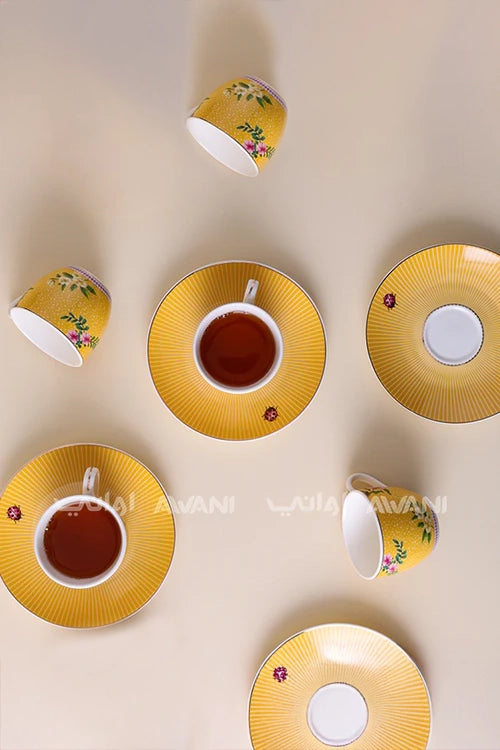 This elegant tea set features a beautiful floral and ladybug design, adding a touch of nature to your tea drinking experience. Crafted with stunning yellow porcelain, this set is perfect for any tea lover looking for a sophisticated and stylish addition to their collection. Elevate your tea time with this charming set.