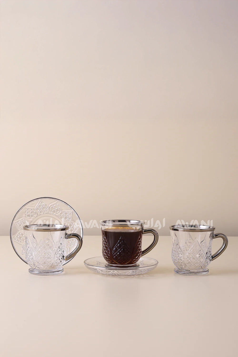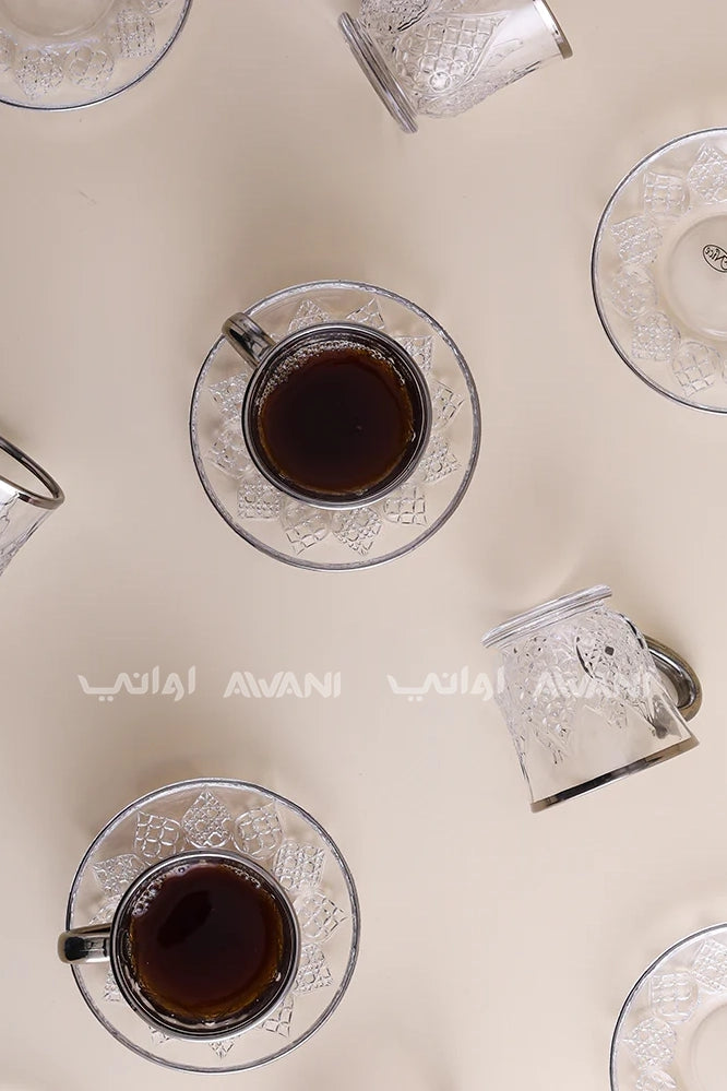 Tea Glass & Saucer Set - Leaf Design Clear - Matt Silver Color (Small)