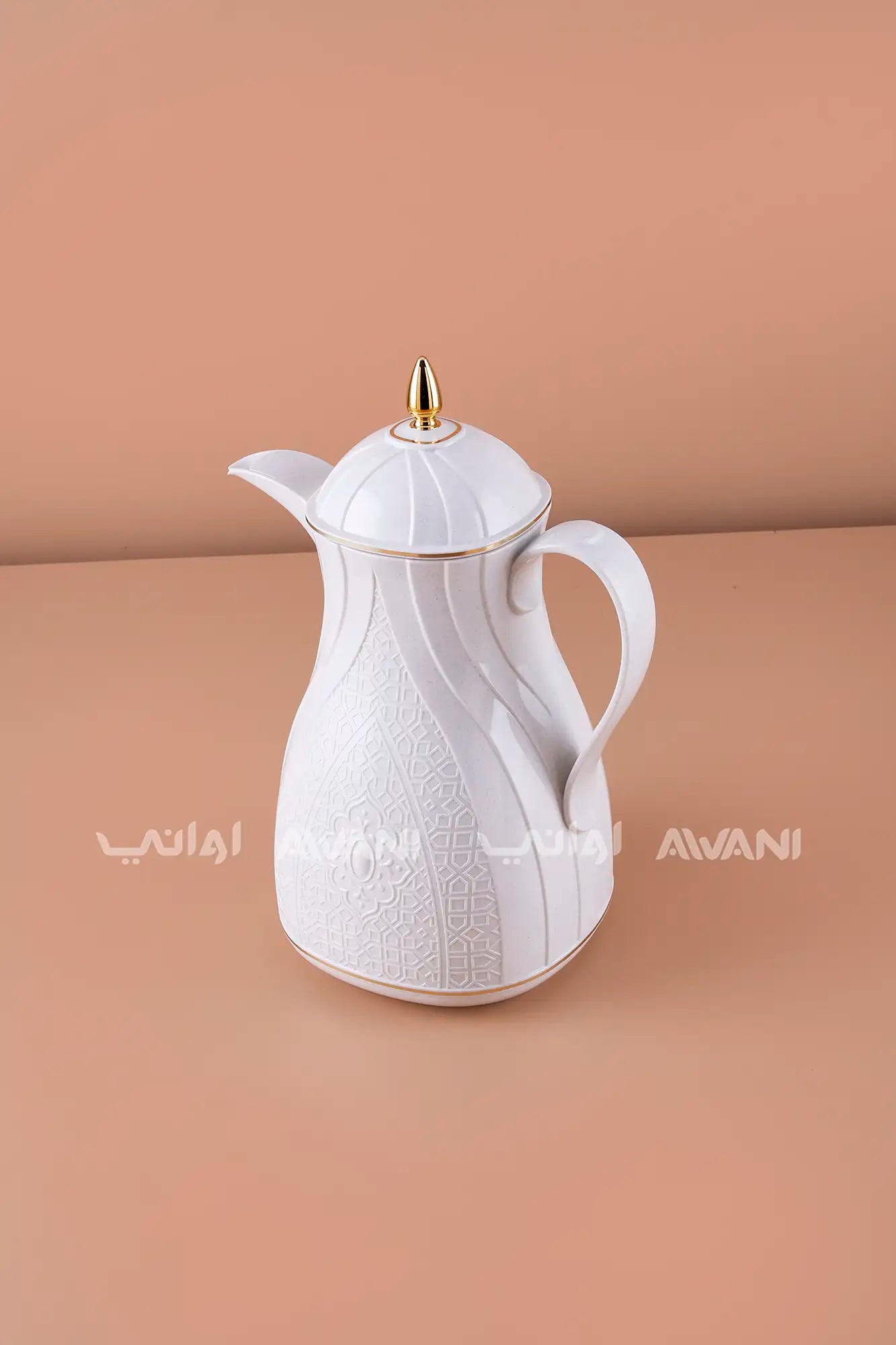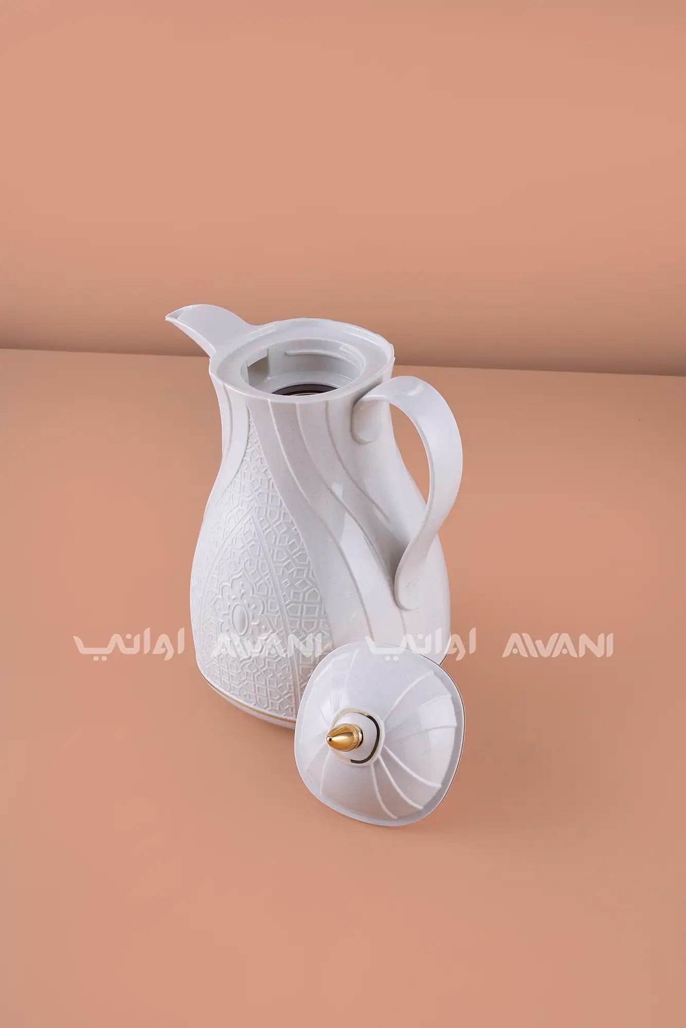 Rose Thermal Flask Set (1.3 L) – Insulated Coffee Dallah Light Gray with Gold Accents