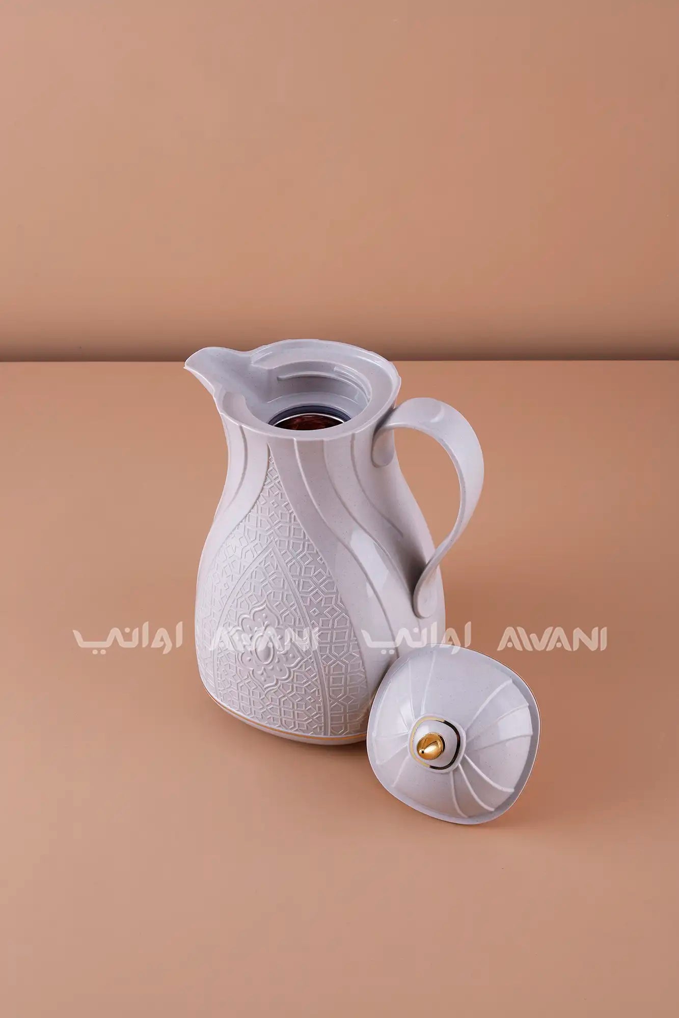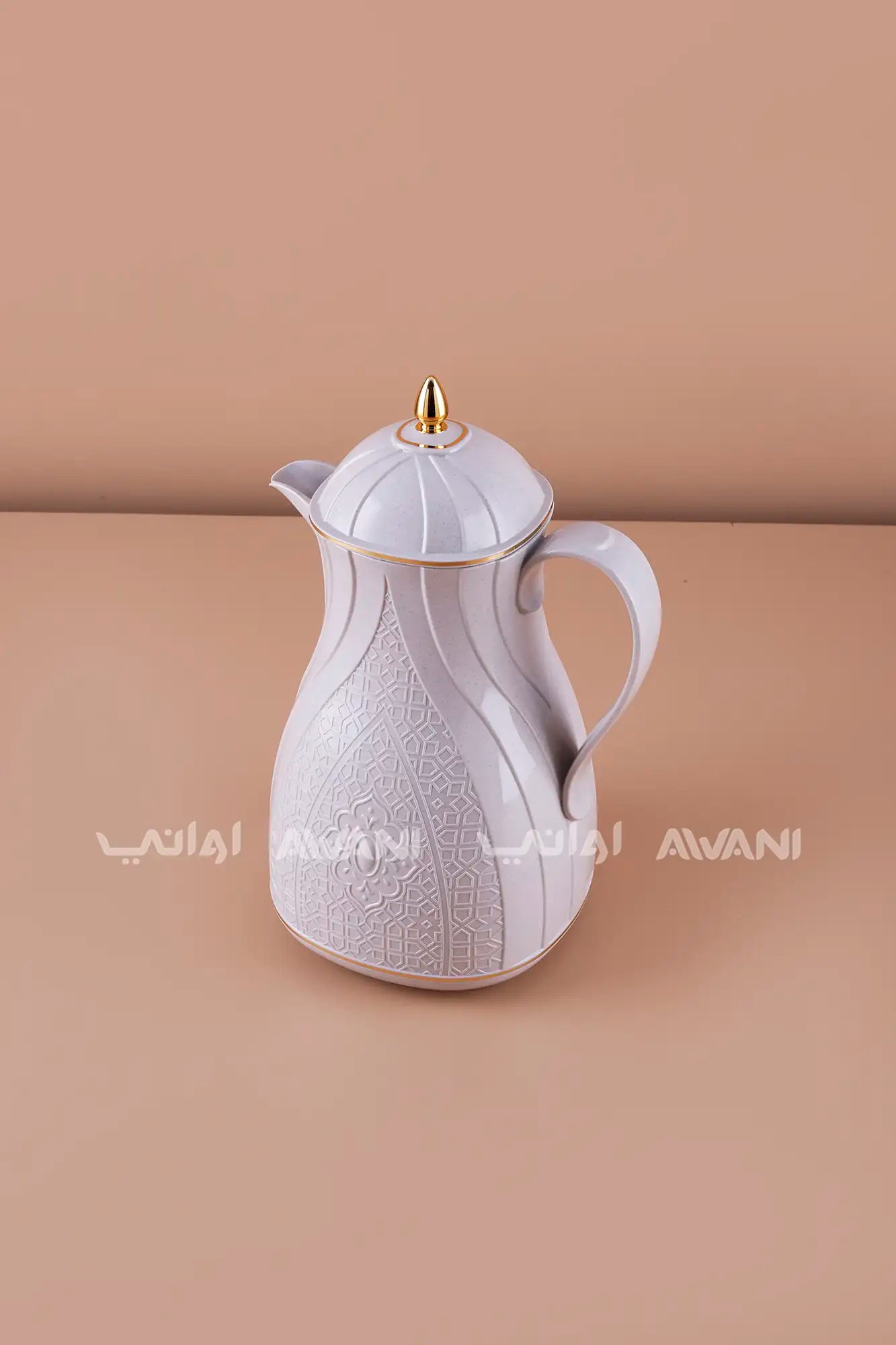 Rose Thermal Flask Set (1.3 L) – Insulated Tea Dallah Light Gray with Gold Accents