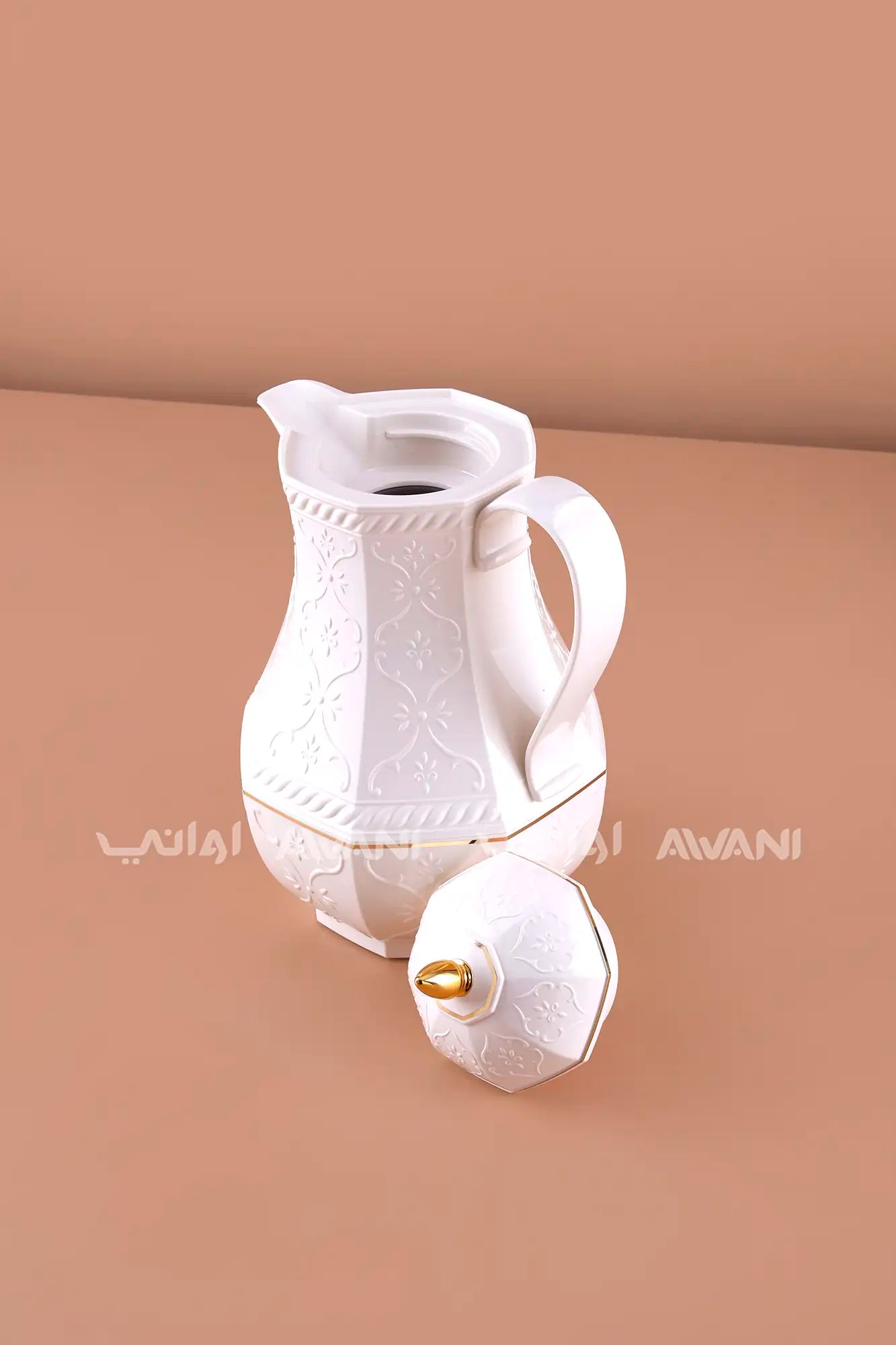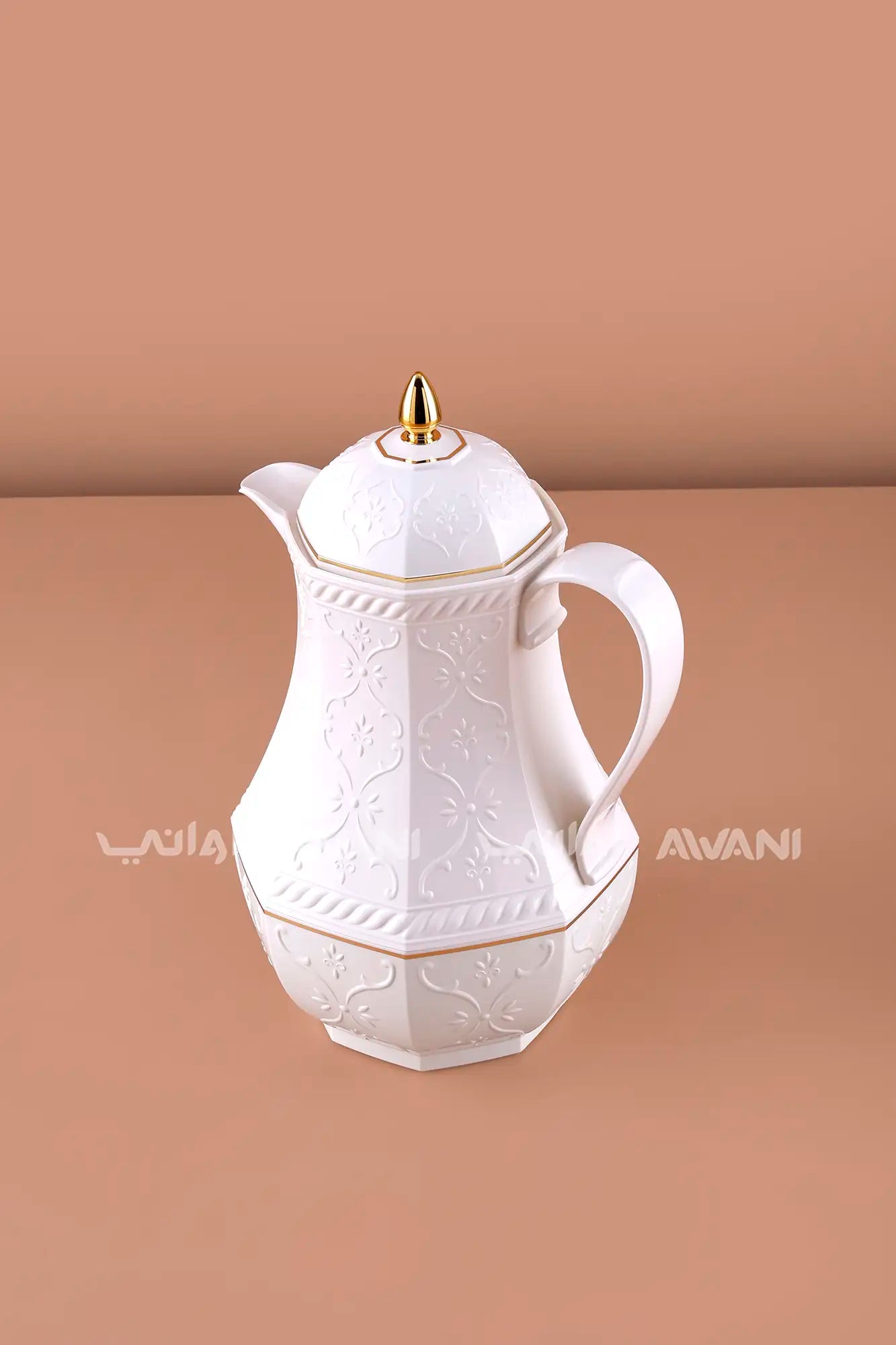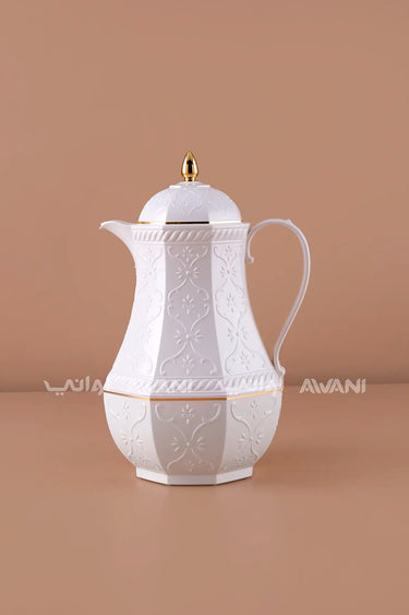 1L White Octagonal Thermal Carafe – Elegant Insulated Coffee & Tea Dallah with Gold Accents