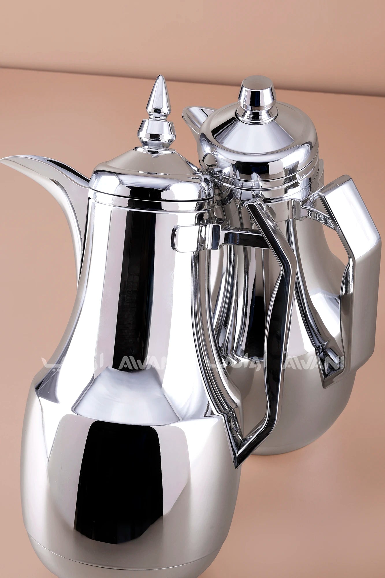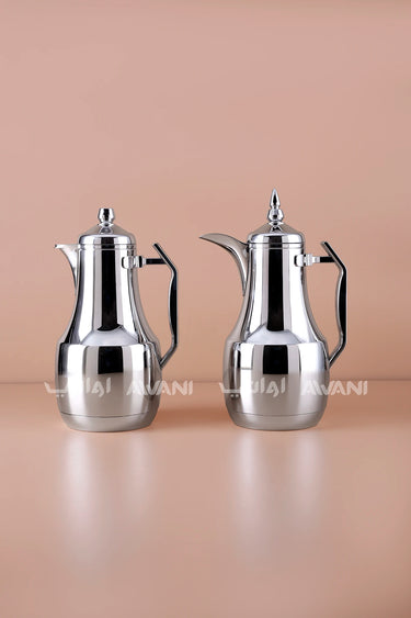 Elegant 2-Piece Dallah Vacuum Flask Set - Brown/ Silver