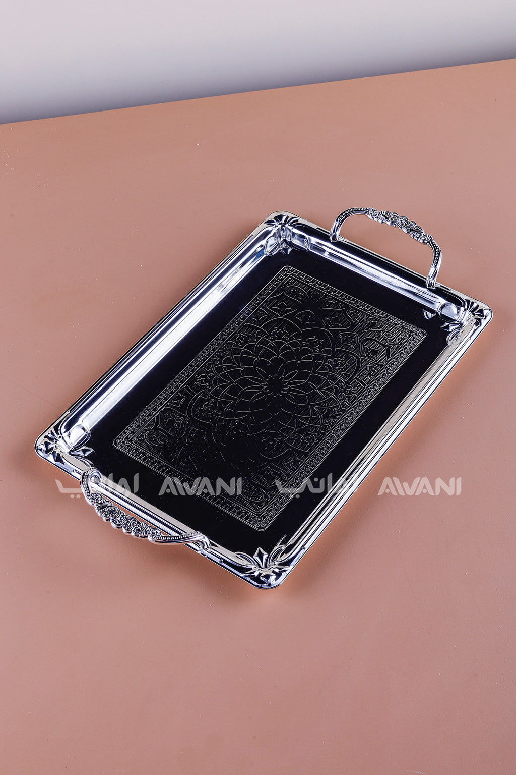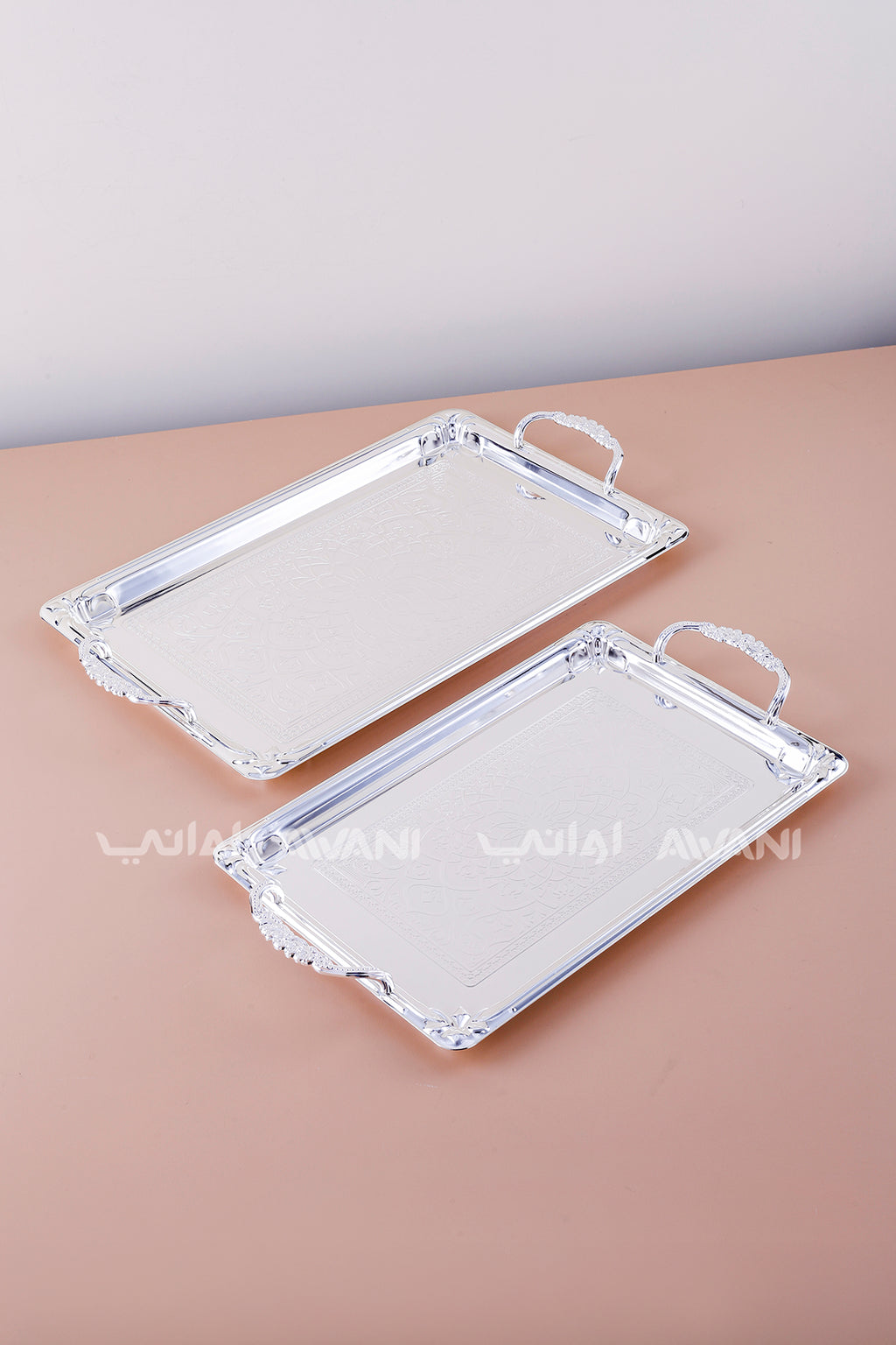 2 Pcs Luxury Silver Tray | Decorative Metal Serving Platter