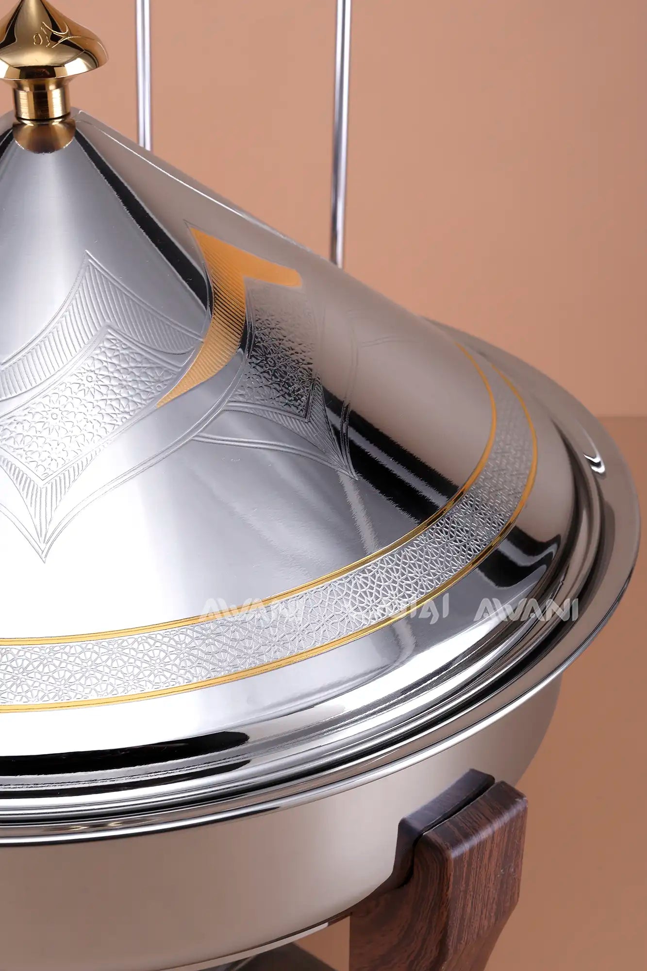 Distinctive Conical Lid: Gold-etched patterns with decorative finial.