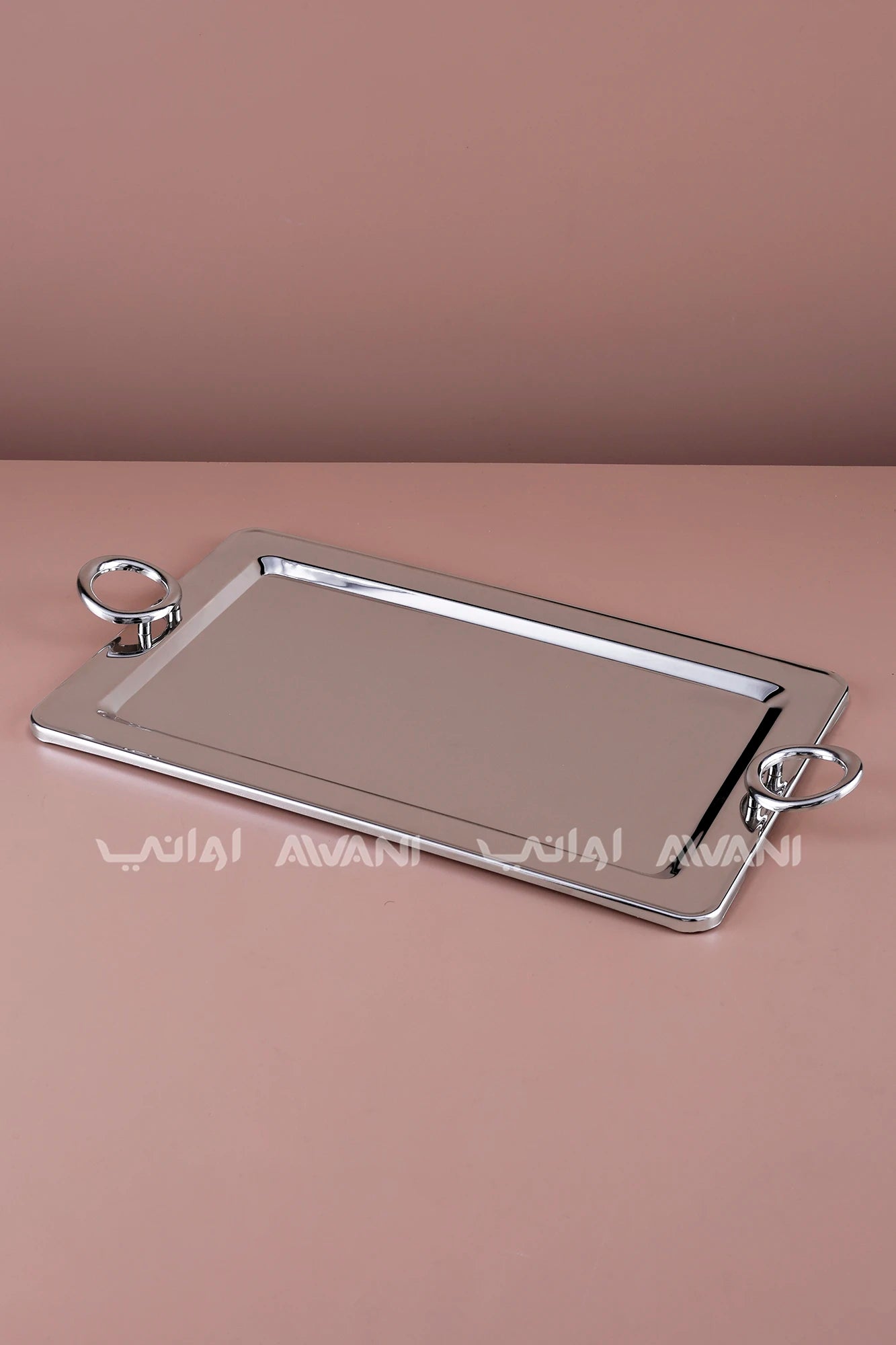Elevate your table service with this refined silver tray, designed for both functionality and elegance. The integrated handle ensures effortless transport of beverages, appetizers, or desserts, while the polished silver finish complements any décor style. Perfect for entertaining guests or daily use, this versatile piece combines practical design with timeless sophistication. An essential addition to any host's collection.