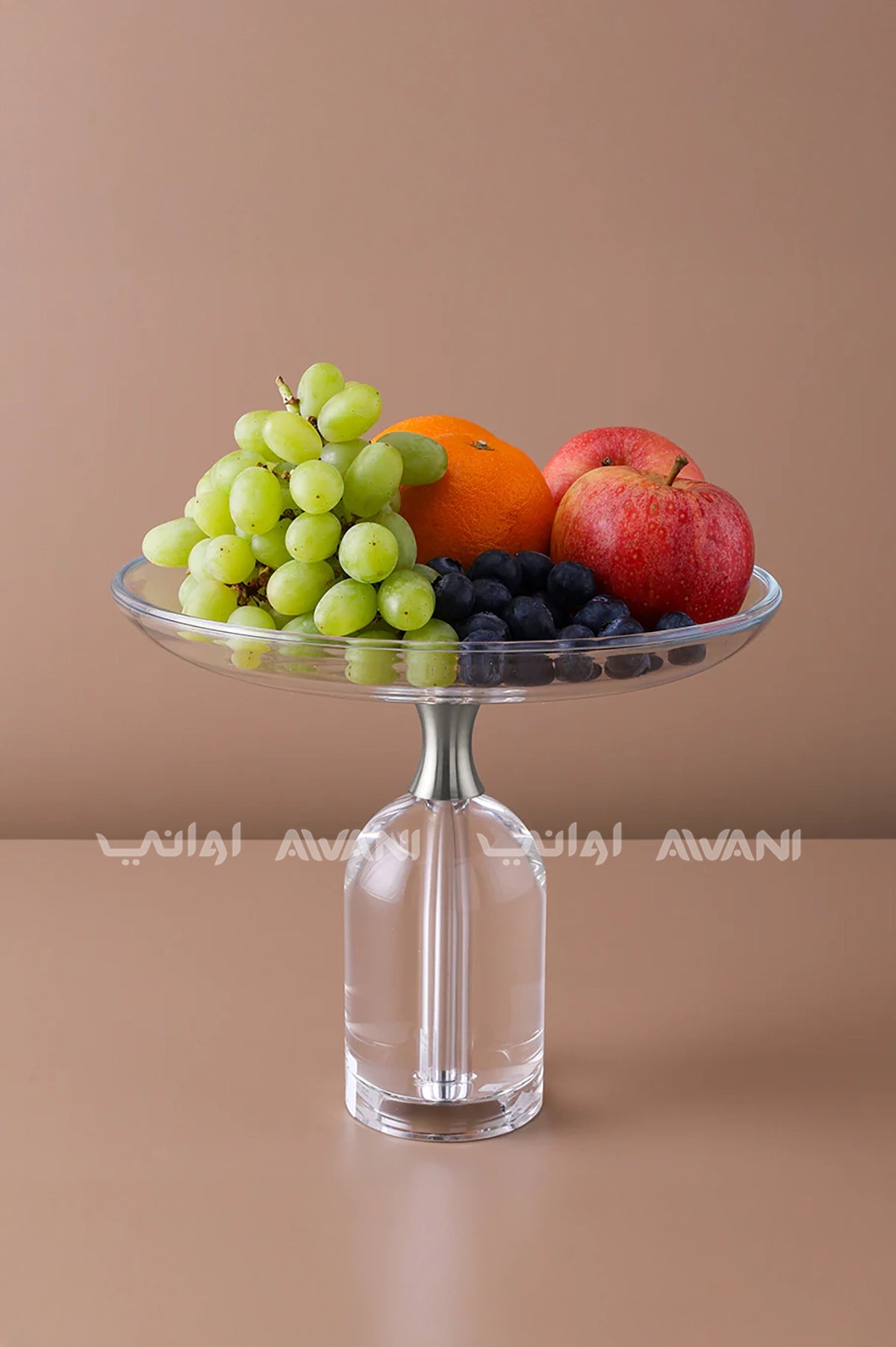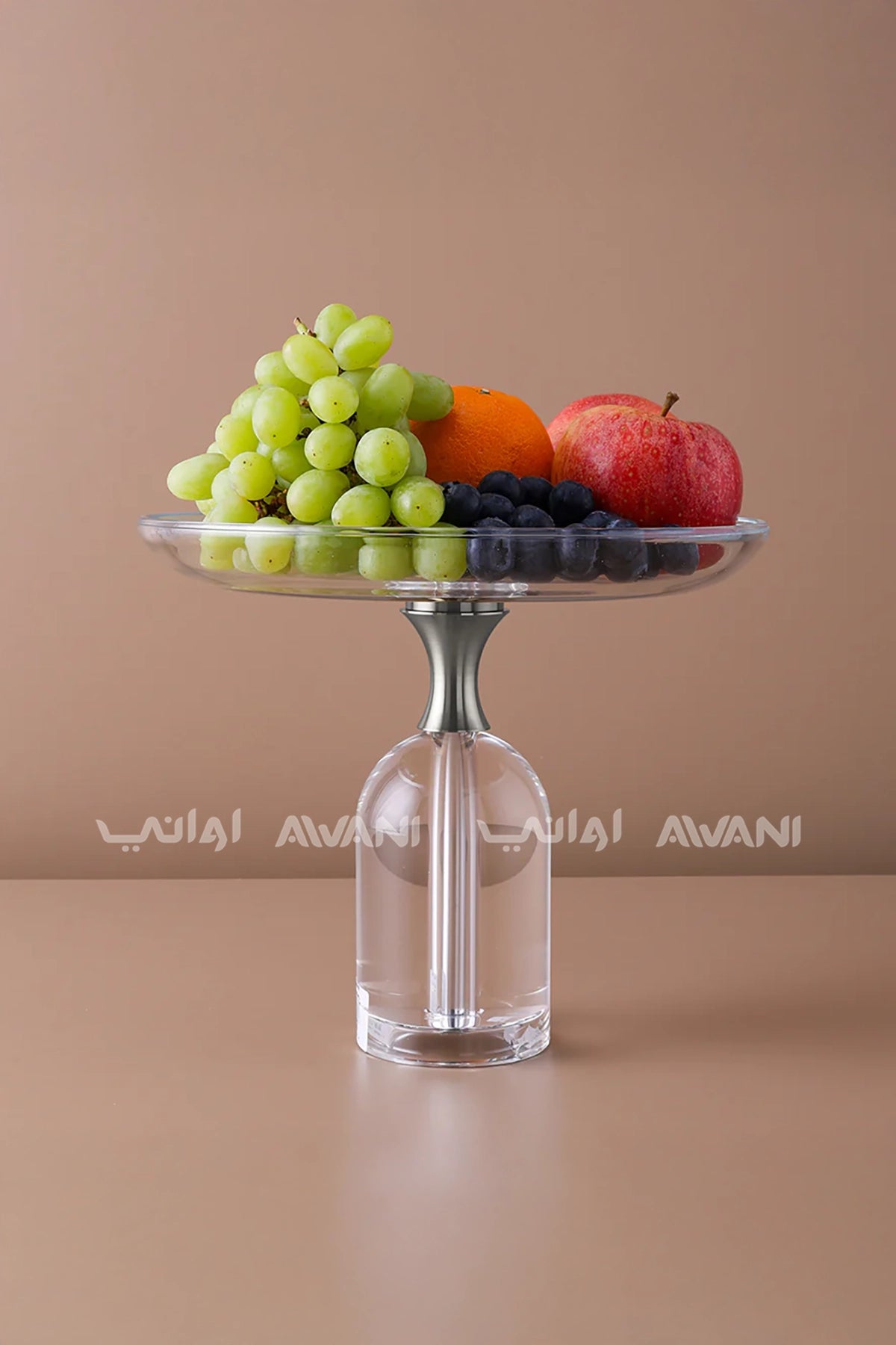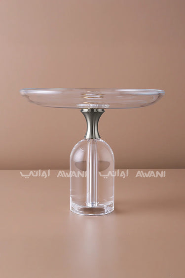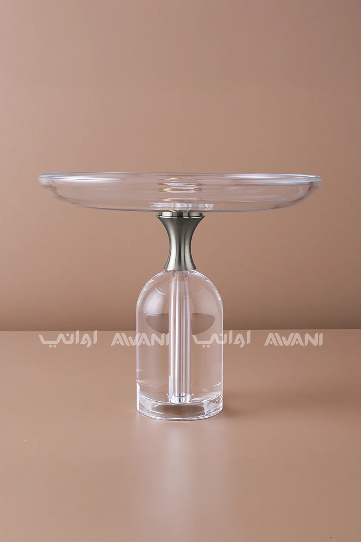 Clear Silver Holder | Stand with Clear Design Plate Crystal Glass Fruit Bowl Coffee Table Creative Decoration - Large Size